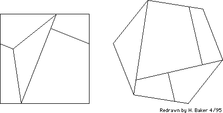 Figure 4. [Problem 85] A surprising square <--> hexagon dissection, adapted from page 164 of the November, 1961 issue of Scientific American, which see for further diagrams and discussion.